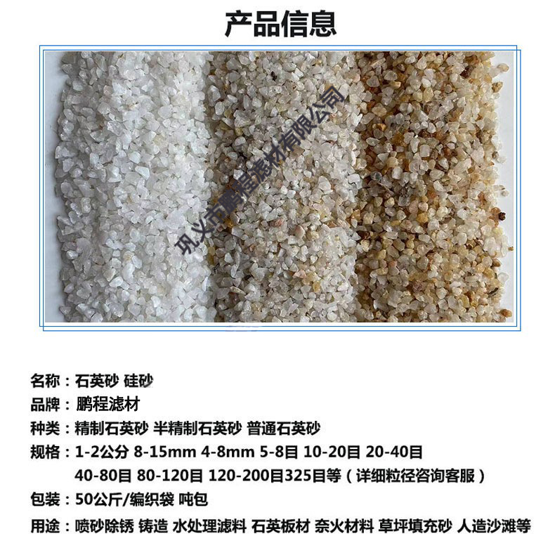 工業(yè)用水 和生活用水 及工業(yè)污水其他水質(zhì)凈化處理用石英砂濾料 鵬程濾材現(xiàn)貨歡迎咨詢。