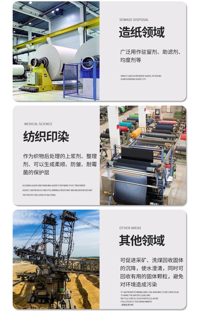 陰離子聚丙烯酰胺:是水溶性的高分子聚合物, 主要用于各種工業(yè)廢水的絮凝沉降,沉淀澄清處理,如鋼鐵廠廢水,電鍍廠廢水,冶金廢水,洗煤廢水等污水處理、污泥脫水等。還可用于飲用水澄清和凈化處理。由于其分子鏈中含有一定數(shù)量的極性基團(tuán),它能通過吸附水中懸浮的固體粒子,使粒子間架橋或通過電荷中和使粒子凝聚形成大的絮凝物,故可加速懸浮液中粒子的沉降,有非常明顯的加快溶液澄清,促進(jìn)過濾等效果。